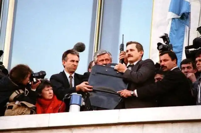Вице-президент (а по версии Белого дома — и.о. президента) Александр Руцкой призывает толпу взять штурмом мэрию Москвы и Останкино.3 октября 1993 года