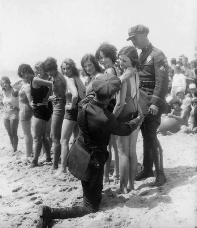 7. Купальники измеряются на соответствие приличиям. Венис-Бич, Калифорния, 1929 год