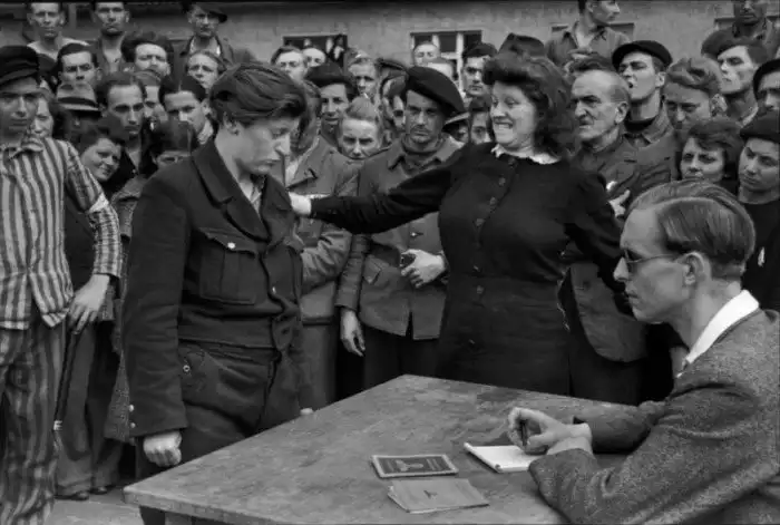 15. Женщина, замаскированная под военного беженца, разоблачена как информатор гестапо. Дессау, Германия, 1945 год