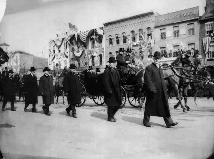17. Агенты секретной службы идут по обеим сторонам кареты президента Теодора Рузвельта во время его инаугурации 4 марта 1905 года