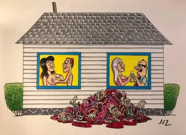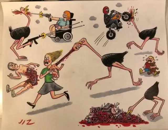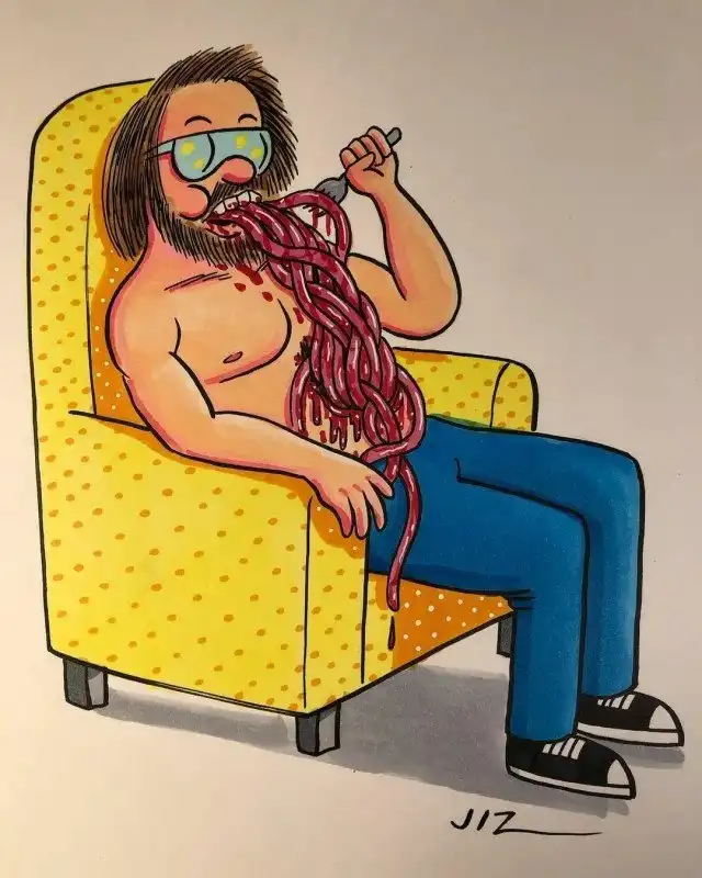 Джонни Райан рисует мерзотные, но смешные картинки — он как тот ваш одноклассник, все время рисовавший на уроках пипки, какашки и прочие непотребства, только немного постарше. В целом, тут добавить нечего. Если вы терпеть не можете ерундистику, каляки-маляки с оторванными конечностями и отбитый сортирный юмор, лучше обойдите творчество Райана стороной. Всех остальных — милости просим. И да, это тот самый чувак нарисовавший безбашенный комикс «Тюремная Яма».
