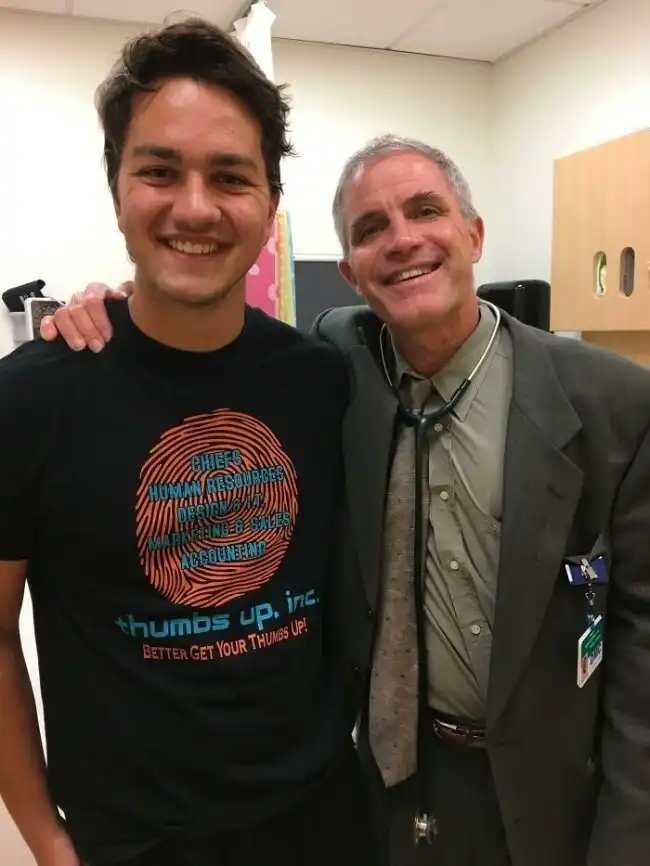 "Когда я родился, моим родителям сказали, что из-за стеноза легочной артерии я не проживу и года. На снимке - я с моим кардиологом. Я прожил чуть дольше года: сегодня начинается мой первый семестр в университете"