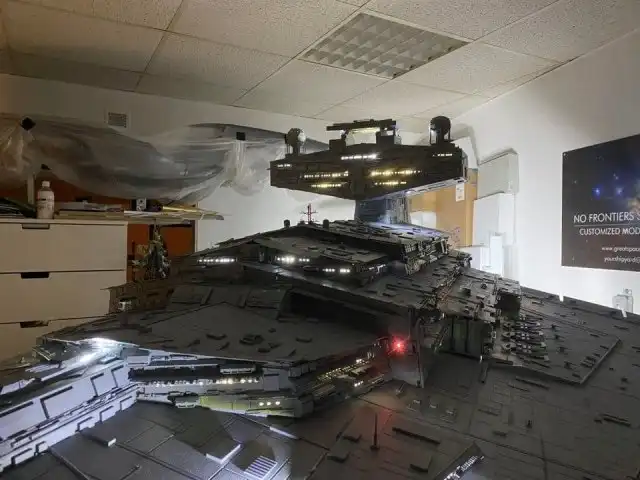 На Reddit опубликовали фотографии гигантского корабля из "Звездных войн". Мужчина утверждает, что потратил на его создание более трех тысяч часов. Модель появится на специальной выставке в честь киносаги в ноябре. Причем, макет корабля настолько большой, что его даже не вынуть через окно - придется снимать оконную раму в мастерской.