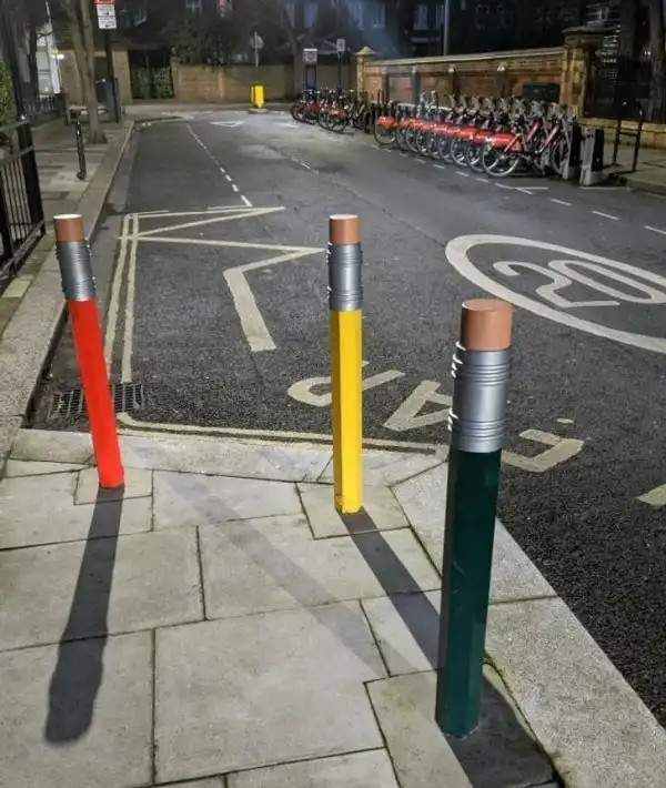 Так оформили столбики, расположенные рядом со школой