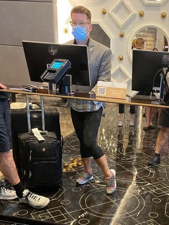Это не человек с открытым ртом, а просто девушка, поправляющая волосы