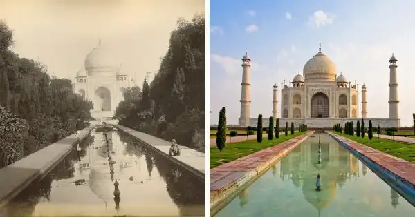 Тадж-Махал, Индия — конец 19 века и сейчас