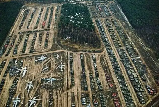 Стоянка зараженной радиацией техники, участвовавшей в ликвидации аварии на ЧАЭС, Украина, 1993 год.