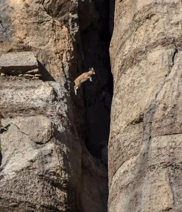 16. Снежная коза перепрыгивает ущелье