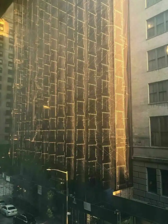 Строительные леса в закатном солнце