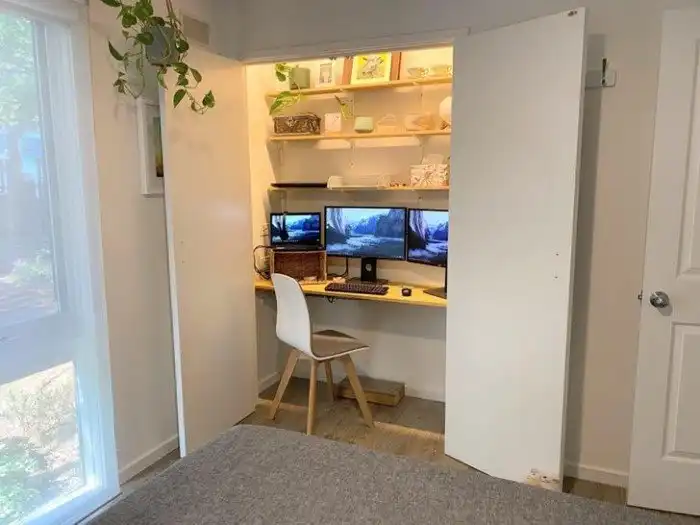 «У меня в комнате две кладовки, поэтому из одной я сделал небольшой уголок для учебы»