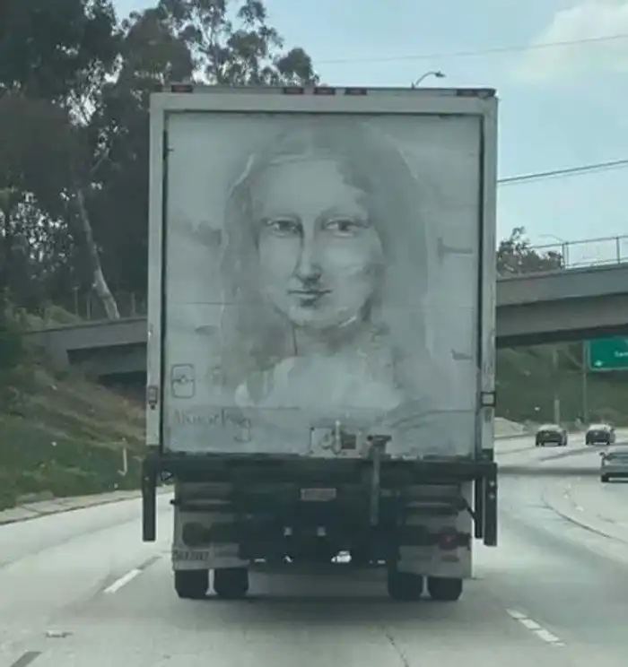16. Кто-то нарисовал Мону Лизу пылью, скопившейся на кузове грузовика
