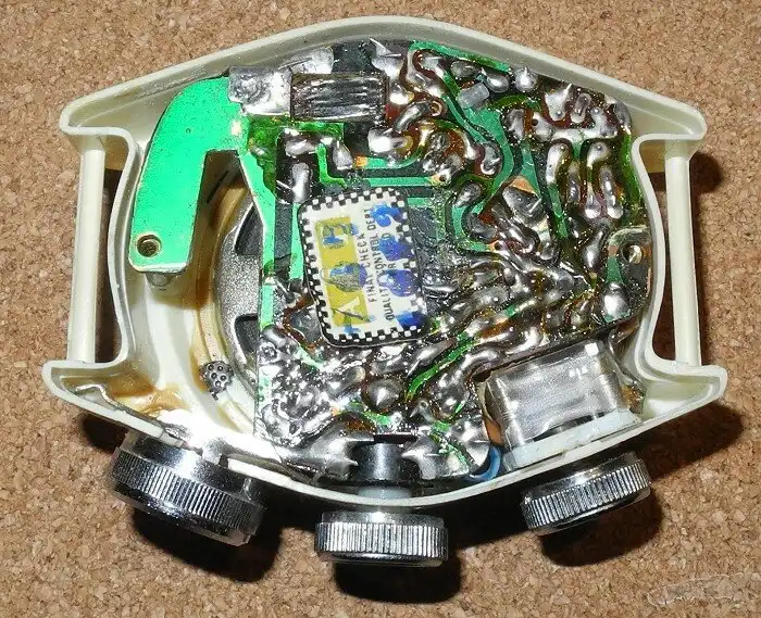 На сайте радиомузея утверждается, что приемник питался от одной батарейки размера АА. Я так и не смог обнаружить держатель батарейки на фото