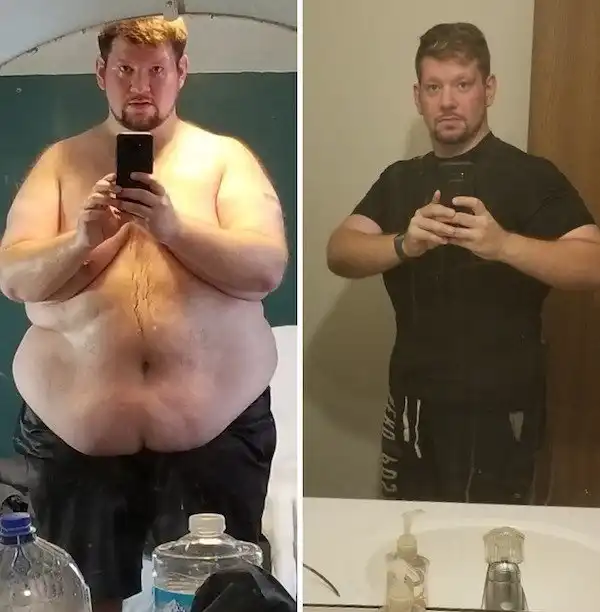 18. "Фото слева было сделано ровно 3 года назад, я тогда весил примерно 270 килограмм. Сейчас я вешу 104".