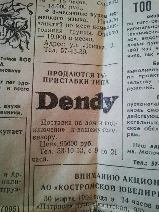 Объявление о продаже, 1994 г.