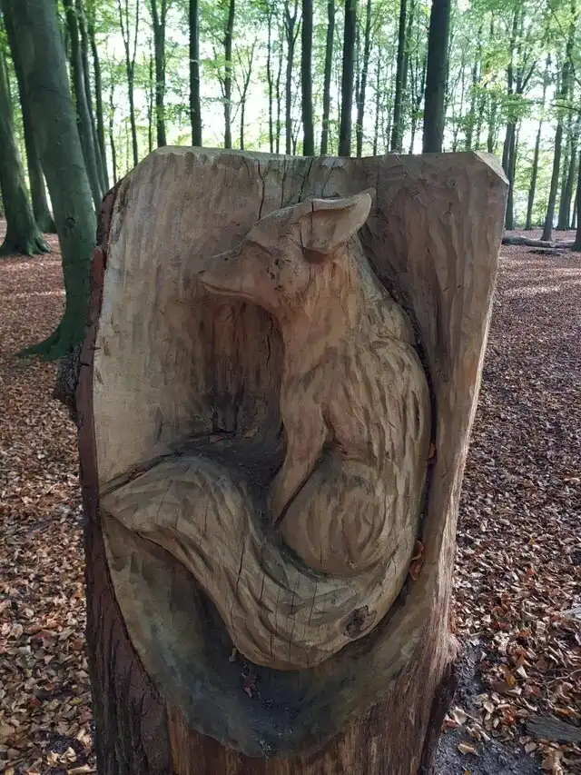 Кто-то вырезал лису в старом пне, получилось очень здорово
