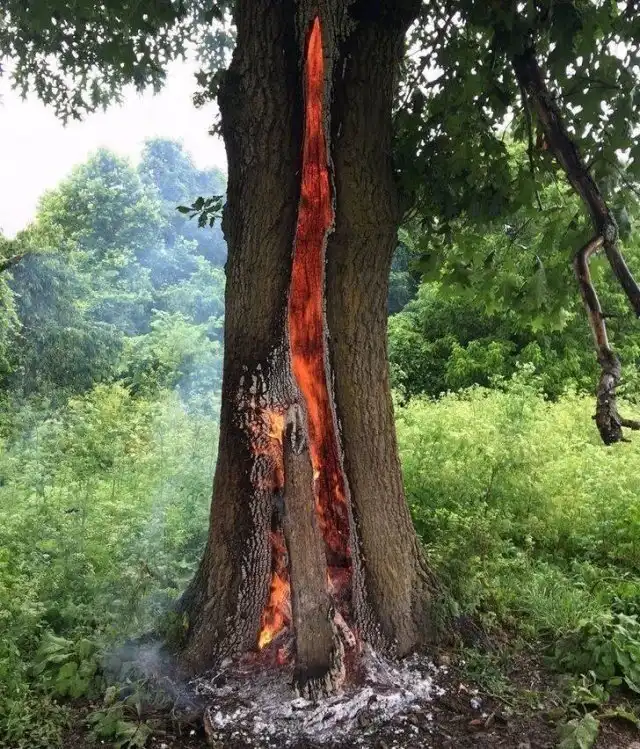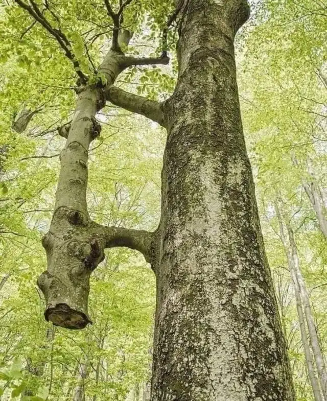 Половина нижнего ствола этого дерева была срезана, но дерево все равно выжило