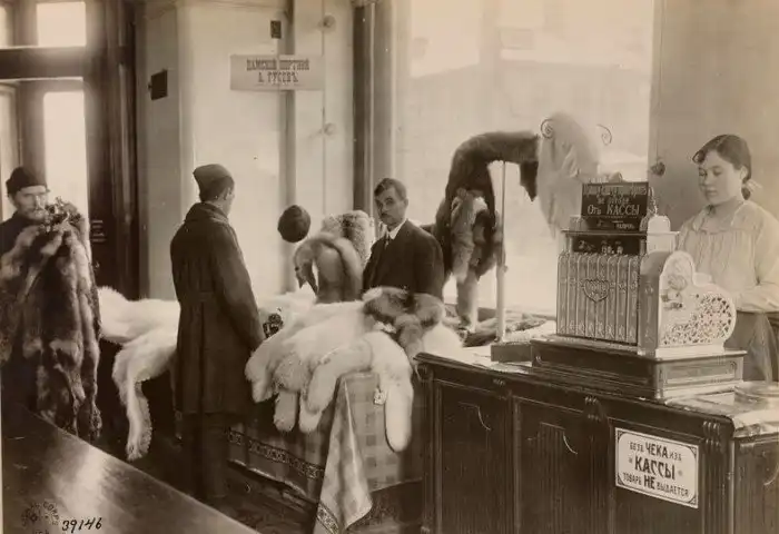 2. Американец покупает меха в магазине. Архангельск. Северная Россия. 1919 год