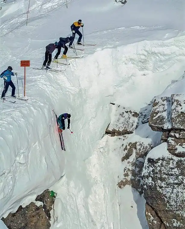 22. Лыжник-экстремал Даг Кумбс спускается с отвесной скалы. Вайоминг, США, 1989 год