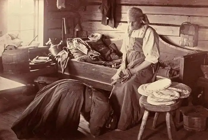24. Карелия, 1894 год. Невестка кланяется в ноги свекрови. Фото: Инто Конрад Инха