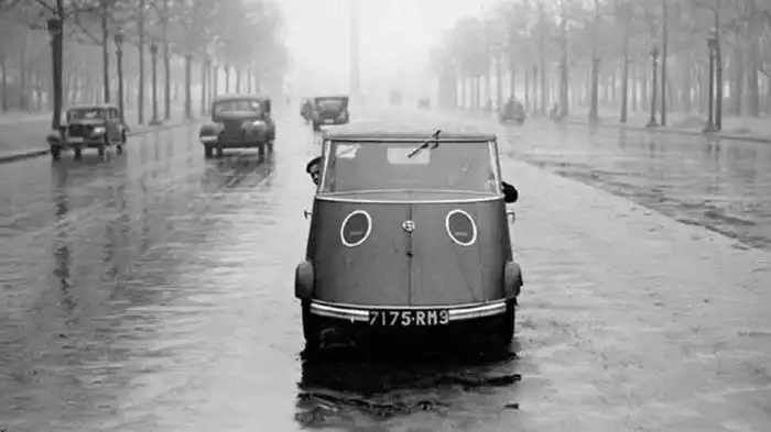 Во время Второй мировой войны дефицит бензина побудил искать новые источники энергии. В 1941 году десяток компаний начали производство электромобилей. Electra Пьера Фора: 2 двери, 4 колеса, полная масса пустого 550 кг, 40 км / ч, запас хода 75 км.(Le Petit parisien)
