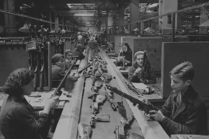 32. Конвейер сборки ППШ-41 на заводе имени Сталина в Москве