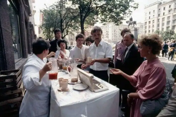 33. У ресторана «Арагви» на улице Горького в Москве. 1985 год