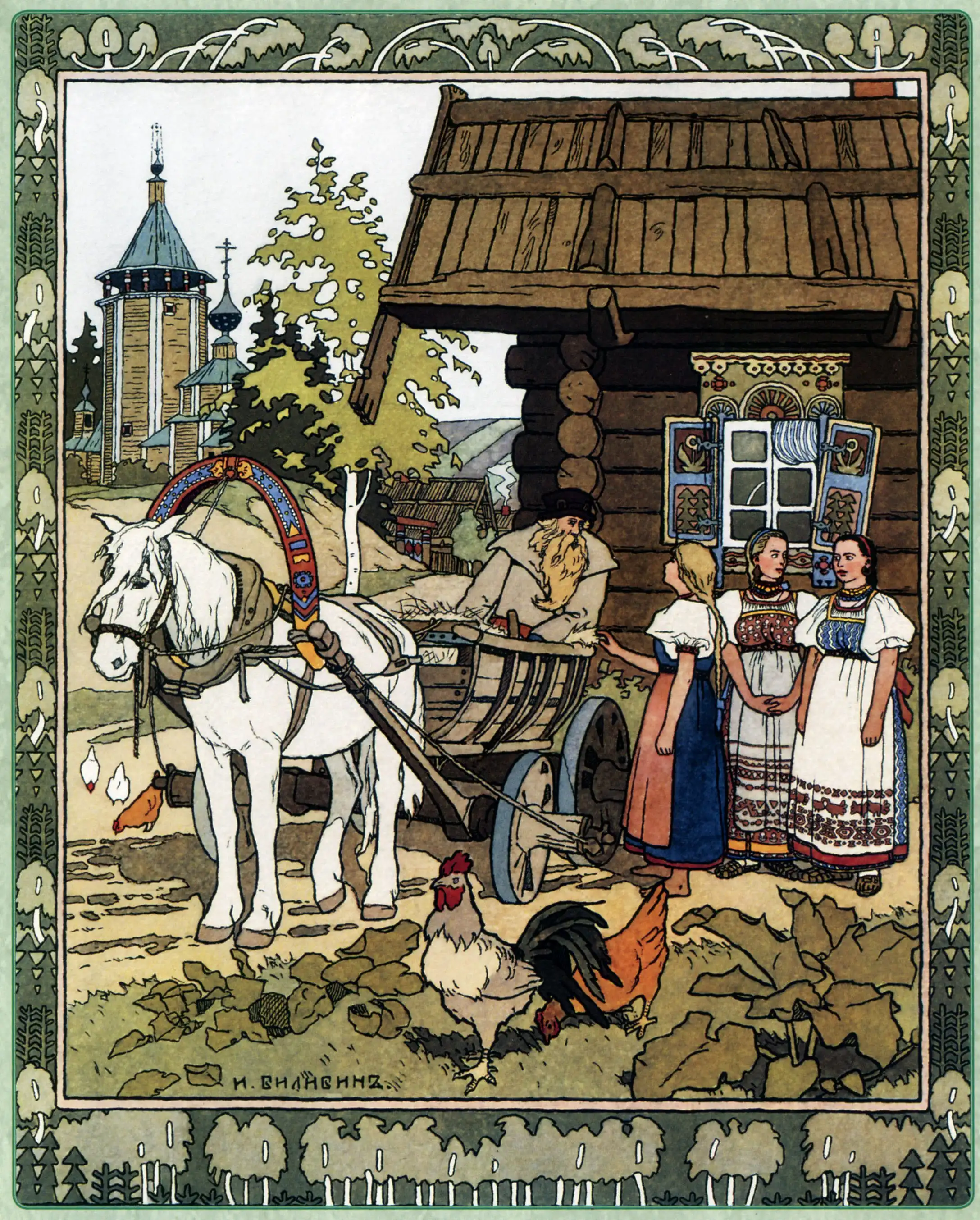 Отъезд отца на ярмарку. Иллюстрация к сказке Пёрышко Финиста Ясна Сокола