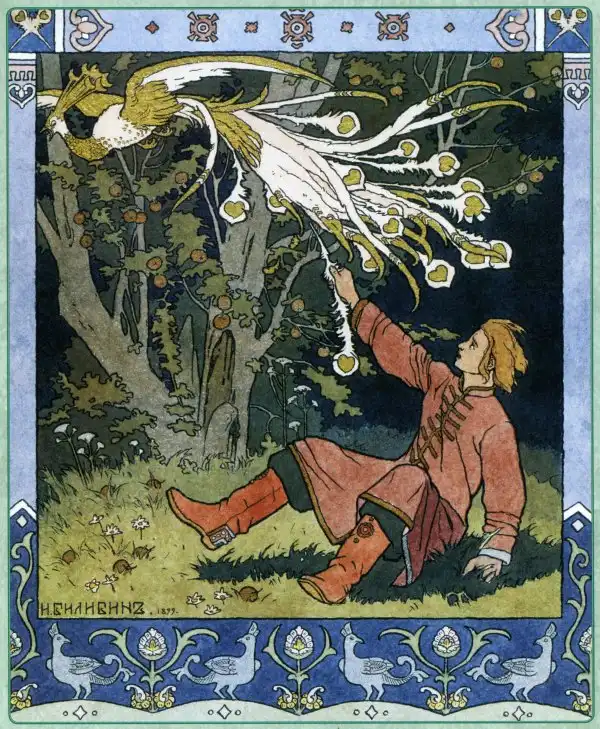 Иллюстрация к сказке Иван Царевич, Жар-птица и серый волк