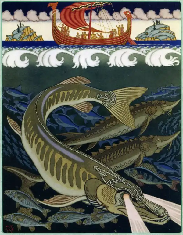 Иллюстрация к сказке А.С. Пушкина Сказка о рыбаке и рыбке. 1919