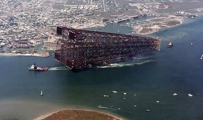15. Транспортировка нефтеплатформы Бульвинкл (Bullwinkle Oil Platform) в Мексиканский залив в 1988 году