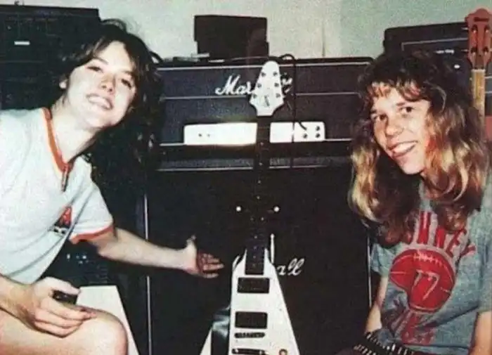 23. 18–летние Ларс Ульрих и Джеймс Хетфилд. Основатели группы Metallica, 1981 год