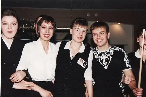 10. Андрей Губин с сотрудницами бильярдной, Россия, 1990 е годы