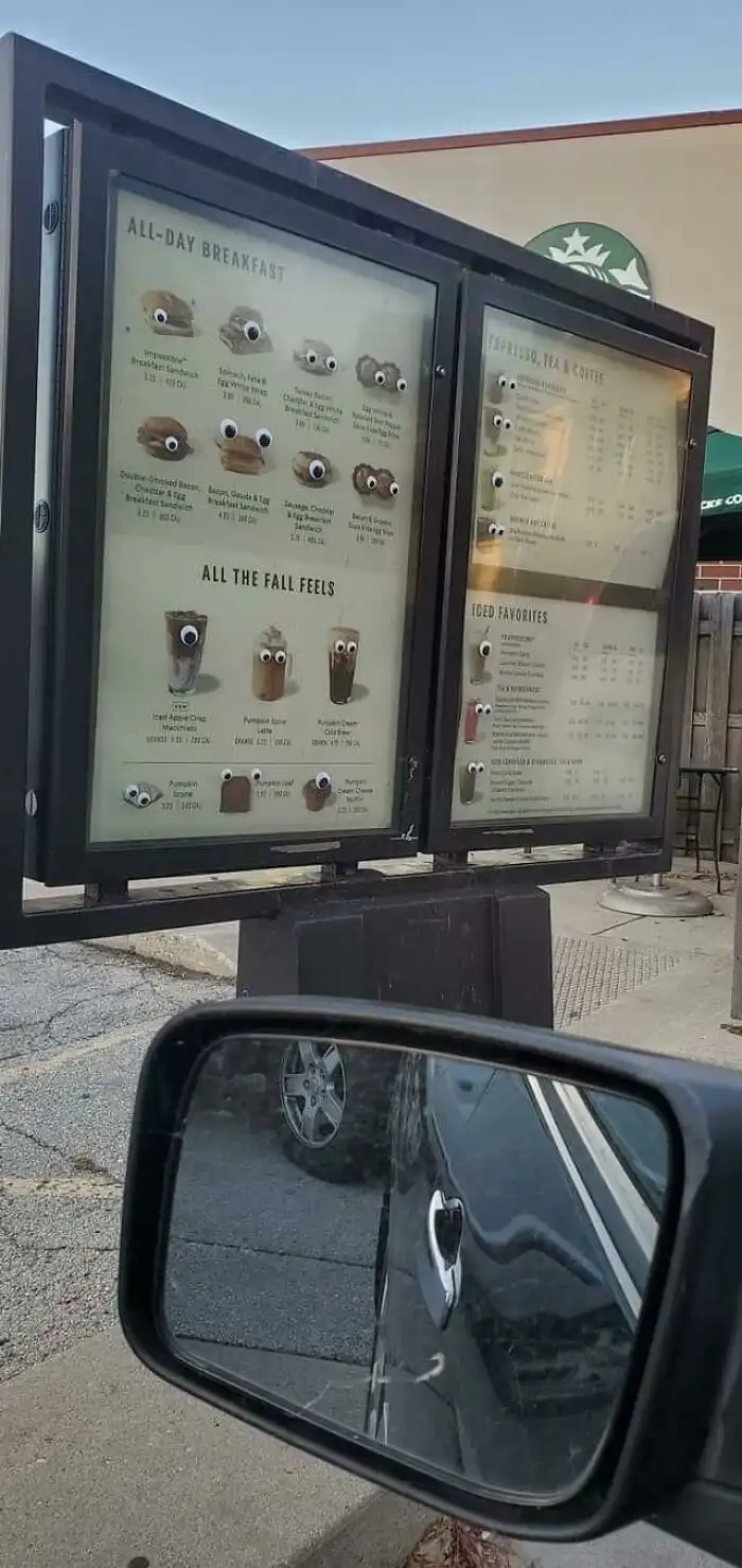 11. "В местном Старбаксе кто-то заклеил все меню глазами на липучке"