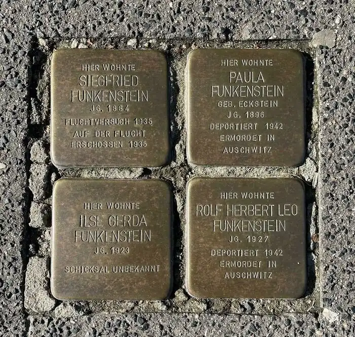 14. "В доме по соседству установлены мемориальные доски в память о бывших жителях, ставших жертвами Холокоста"