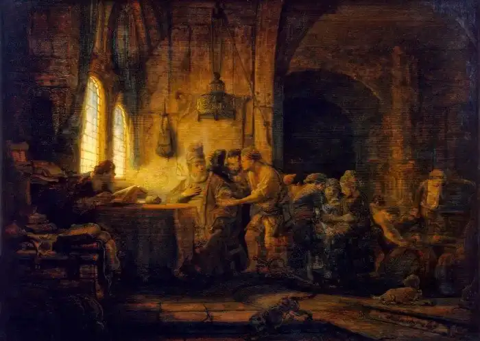 На картине Рембрандта «Притча о работниках на винограднике» тюрбаны работников на заднем плане превратились из синих в серые.