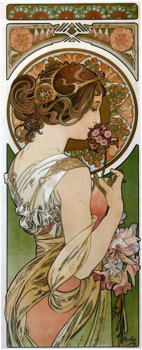 Примулы и Перо. Парное панно (использовались также в качестве календарей). Париж, 1899, 1900