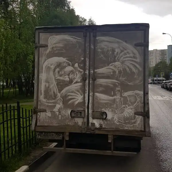 Все люди с творческими способностями могут научиться рисовать и окончить художественную школу. Однако, найти свой личный художественный стиль - это уже совсем другая история. Российскому художнику Никите Голубеву повезло, ибо он нашел свою фишку. Ему не нужны краски и холст. Он создает целые произведения на грязных автомобилях и в итоге у него выходят очень классные работы, которые парень публикует в свой Instagram. Тот самый момент, когда грязная машина выглядит круче, чем чистая.