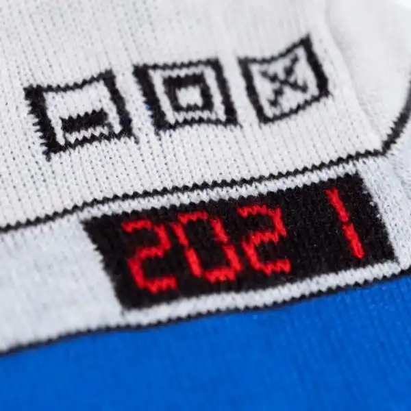 На свитере изобразили окно игры, стилизованное под Windows 3.1 — в этой версии системы впервые появился «Сапёр». Поле для игры сделали в виде ёлки, а мины и метки превратились в ёлочные игрушки и гирлянду. Счётчик мин и времени показывает числа 1990 (год выпуска первой версии игры) и 2021. Изображения взрывов вокруг «ёлки» стали снежинками и звёздами.