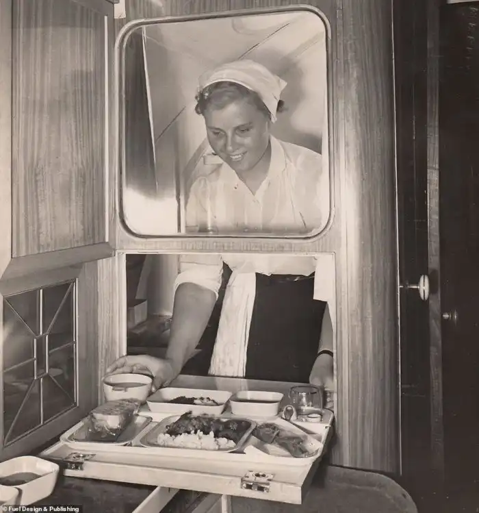 На фото выше: пассажиры в салоне самолета Ту-104. 50-местный авиалайнер с турбореактивным двигателем совершил первый полет 17 июня 1955 года, а в следующем году, когда был сделан этот снимок, он начал трижды в неделю летать по маршруту Москва-Омск-Иркутск с посадкой в Великобритании. Вандермюрен пишет: «22 марта 1956 года Советы удивили авиационный мир, когда их первый пассажирский лайнер приземлился в лондонском аэропорту Хитроу первым международным рейсом. На борту самолета находились советские дипломаты и глава КГБ, прибывшие в Великобританию для подготовки к предстоящему государственному визиту советских лидеров Никиты Хрущева и Николая Булганина (премьер-министр Советского Союза при Хрущеве). Прибытие Ту-104 стало сенсацией, как если бы НЛО приземлился на британской земле. Британское авиационное сообщество и общественность ответили высокой похвалой, а экспертов удивил гигантский скачок советской гражданской авиации».
