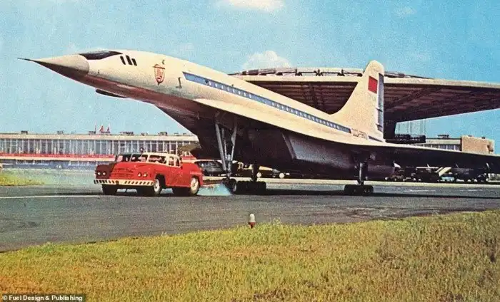 Прототип Ту-144 в московском Шереметьево в 1969 году. Вандермюрен объясняет, что Ту-144 был ответом Советского Союза (немного более быстрым — 2,35 Маха против 2,2 Маха) британо-французскому «Конкорду» — и «на Западе его насмешливо прозвали «Конкордский» (Запад обвинял Советы в краже технических данных для строительства Конкорда). Он совершил свой первый полет в 1968 году, за целых два месяца до того, как «Конкорд» впервые поднялся в небо. Ту-144 преодолел звуковой барьер 5 июня 1969 года, а через год стал первым в мире пассажирским авиалайнером, скорость которого превысила 2,0 Маха. Сильно измененная версия самолета начала коммерческую деятельность 1 ноября 1977 года, вылетев из московского аэропорта Домодедово и прибыв в Алма-Ату двумя часами позже. Сегодня это путешествие занимает чуть более четырех часов. Однако после фатальной катастрофы новой версии Ту-144 во время испытательного полета в 1978 году сверхзвуковые пассажирские перевозки по Советскому Союзу были остановлены, продержавшись всего семь месяцев. Коммерческая потребность в них отпала, поясняет Вандермюрен, и добавляет: «Два самолета Ту-144, переданные Аэрофлоту, выполнили для авиакомпании всего 102 рейса, 55 из которых перевезли в общей сложности 3284 пассажира». Самолет продолжал использоваться для срочных грузовых перевозок, а в 1990-х годах НАСА использовало его для исследования следующего поколения сверхзвуковых самолетов. Сегодня, объясняет Вандермюрен, существует всего семь Ту-144. Один стоит рядом с «Конкордом» Air France в музее техники в Зинсхайме в Германии.