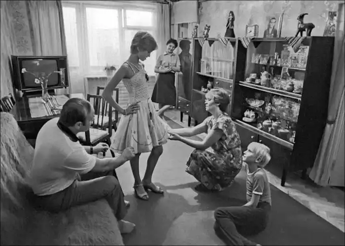 32. «Огонёк» 1957. Семья Ханыниных авиатор Геннадий Васильевич, жена Бэла Махмудовна, сын Сергей и дочь Галя. Тарасевич В.С.