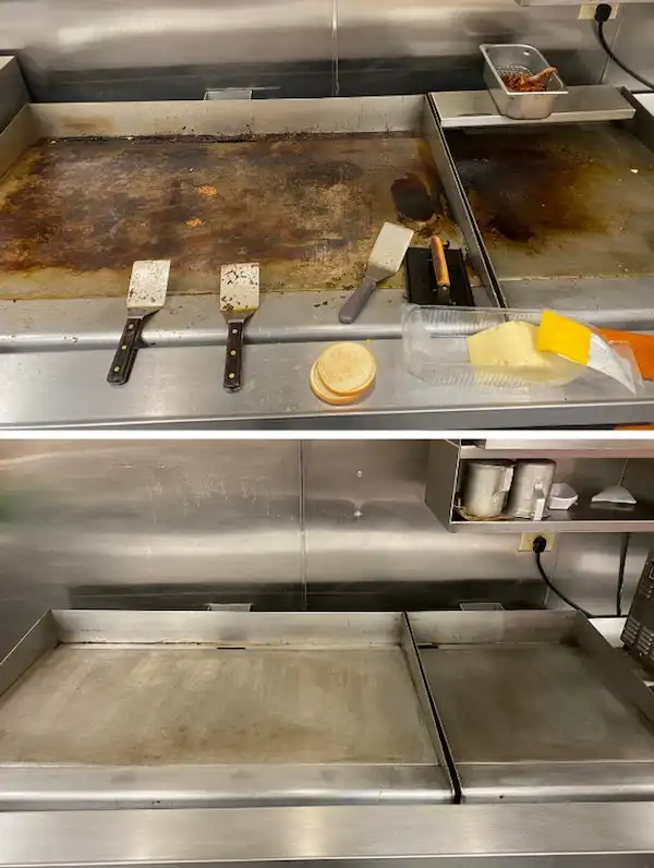 "Гриль до, во время и после чистки"