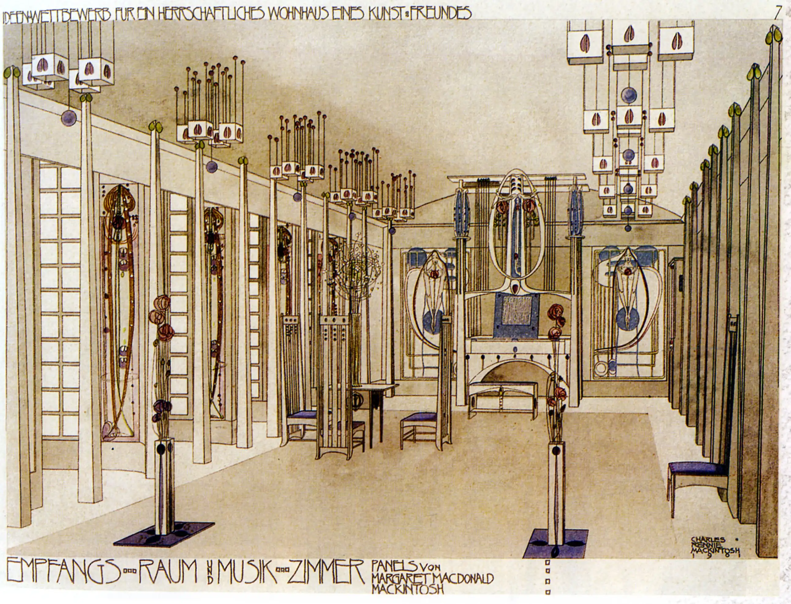 Перспектива музыкальной комнаты (с декоративными панно М. Макдональд-Макинтош)