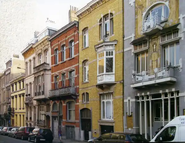 Панорама домов улицы Де Фран в стиле Модерн с собственным домом П. Коши в Брюсселе.