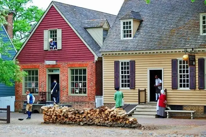 "Брусчатка, улицы и люди, одетые в стиле 1700-х годов".