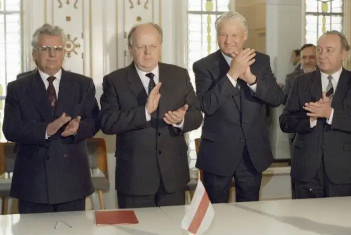 Восьмого декабря 1991 г. в Беловежской Пуще был совершен противозаконный антиконституционный акт, приведший к распаду Союза Советских Социалистических Республик – трое политических авантюристов – президенты РСФСР Б. Ельцин, УССР Л. Кравчук и Председатель Верховного Совета БССР С. Шушкевич заявили о роспуске СССР и создании Содружества Независимых Государств.