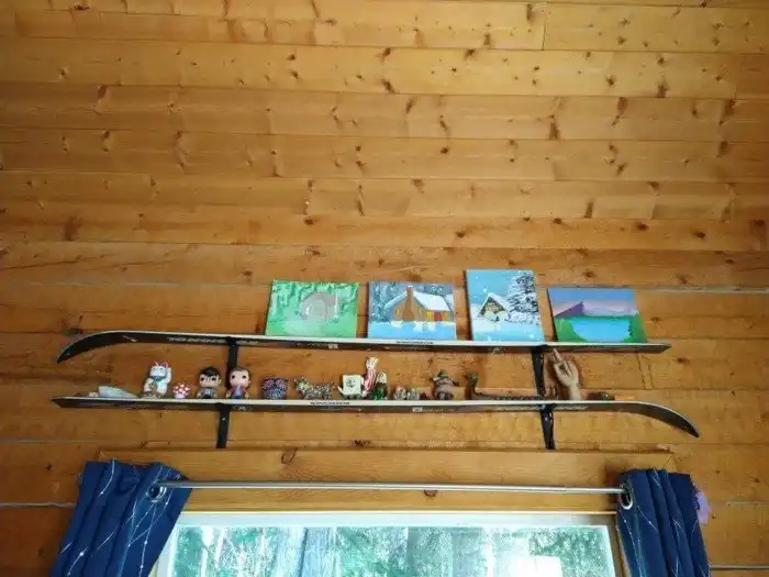 Вот это мастерство!Старые лыжи могут служить отличными полочками