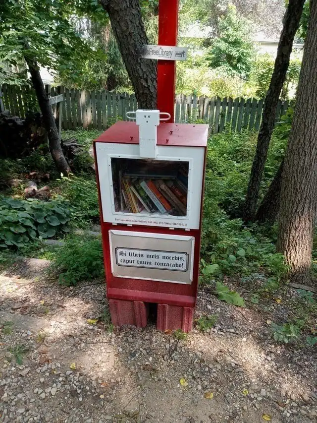 На нашей местной пешеходной тропе стоит старый газетный ящик, который теперь служит бесплатной библиотекой