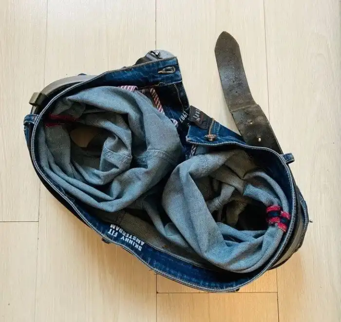 «Недавно переехала к своему парню, который имеет привычку оставлять одежду на полу. Я попросила его убрать джинсы в шкаф и вот что увидела позже»