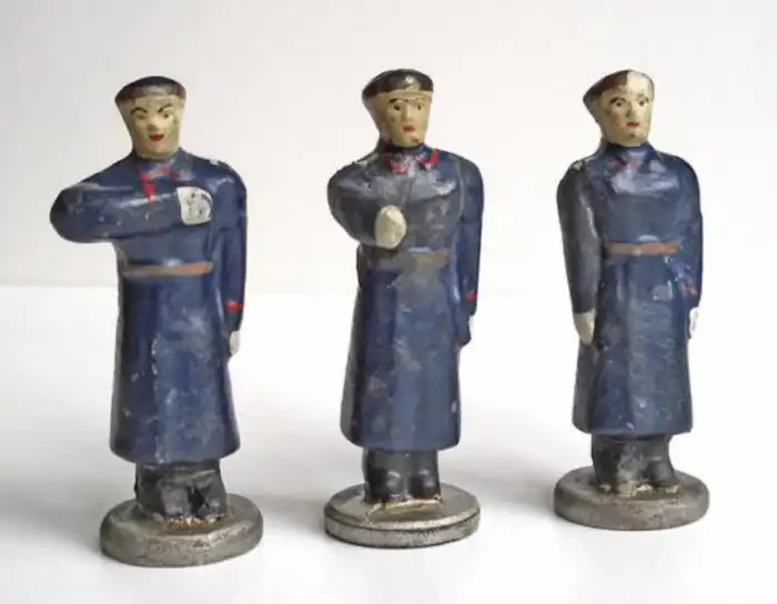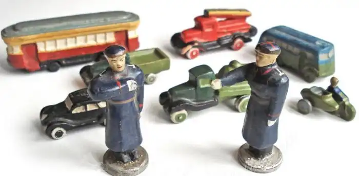 Подобные наборы выпускались в различные годы, начиная с 40-50-х, и разными производителями. Так, например, одни из самых первых наборов были выполнены из мастики, автомобили по своему дизайну напоминают технику 30-х гг., а форма регулировщиков - из второй половины 40-х гг. Чуть позже, примерно в середине 50-х, появляется новый набор, в котором немного меняется внешний вид техники, и используется уже не мастика, а актуальные для того времени полимеры.